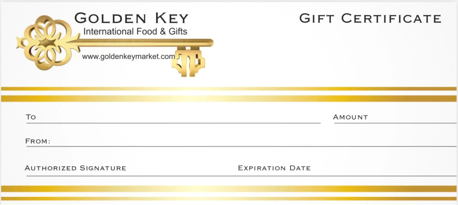 Looking for the perfect gift for a friend, family member, or colleague? A gift certificate from Golden Key Market- International Food and Gifts is an excellent choice!